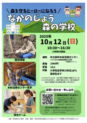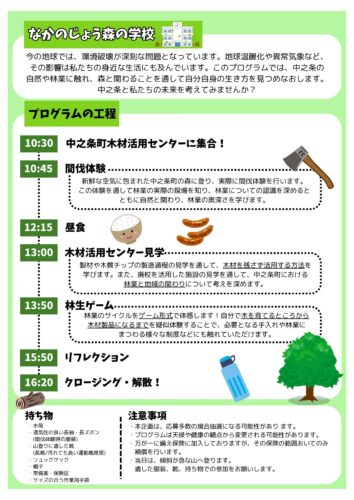 このプログラムでは、中之条の自然や林業に触れ、森と関わることを通して自分自身の生き方を見つめなおします。