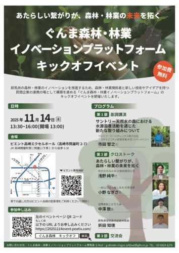 群馬県の森林・林業のイノベーションを推進するため、森林・林業関係者と新しい技術やアイデアを持つ民間企業の連携の場として構築を進める「ぐんま森林・林業イノベーションプラットフォーム」のキックオフイベントを開催いたします。